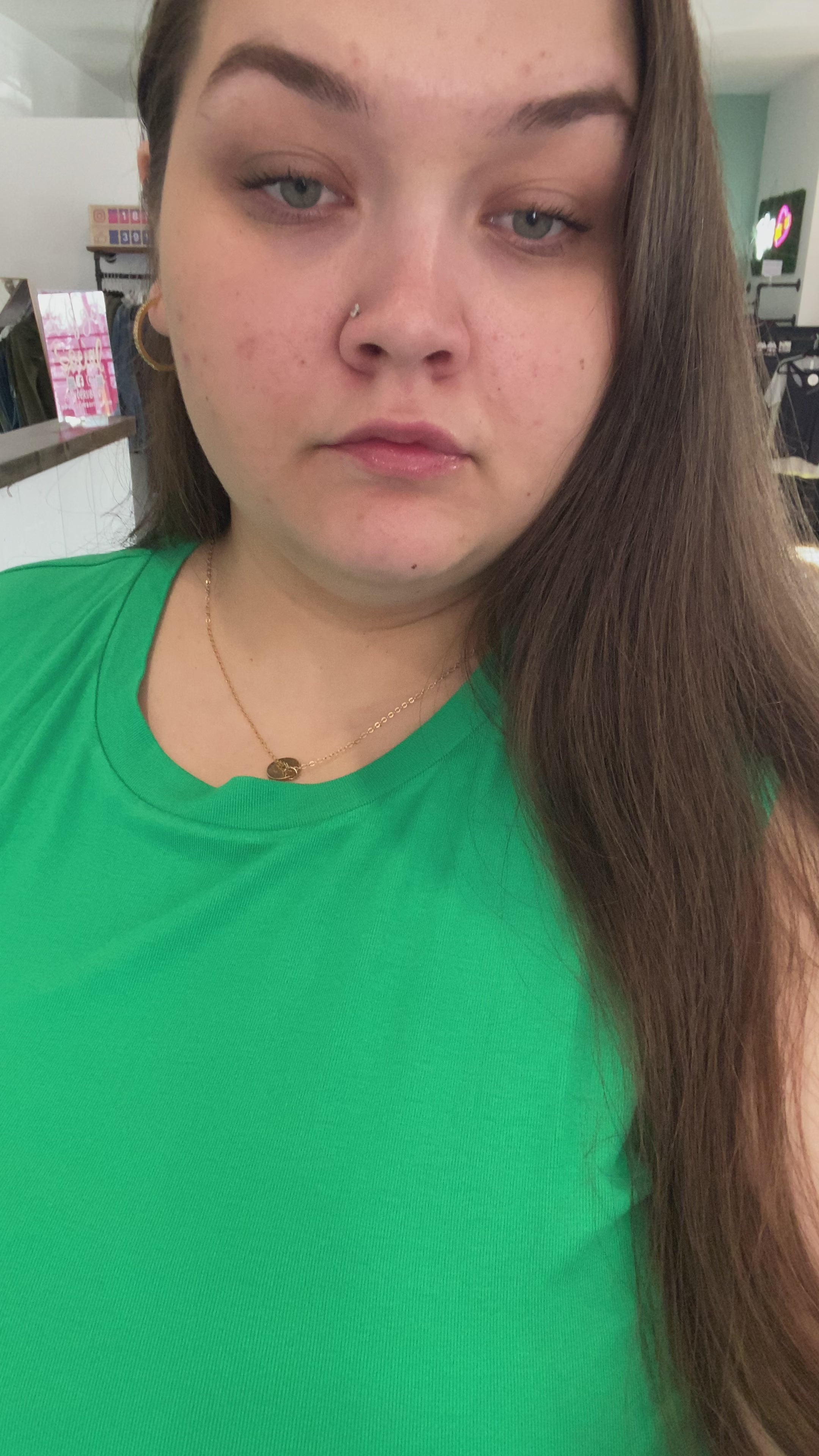 Makayla (green shirt) is wearing size 15(32)