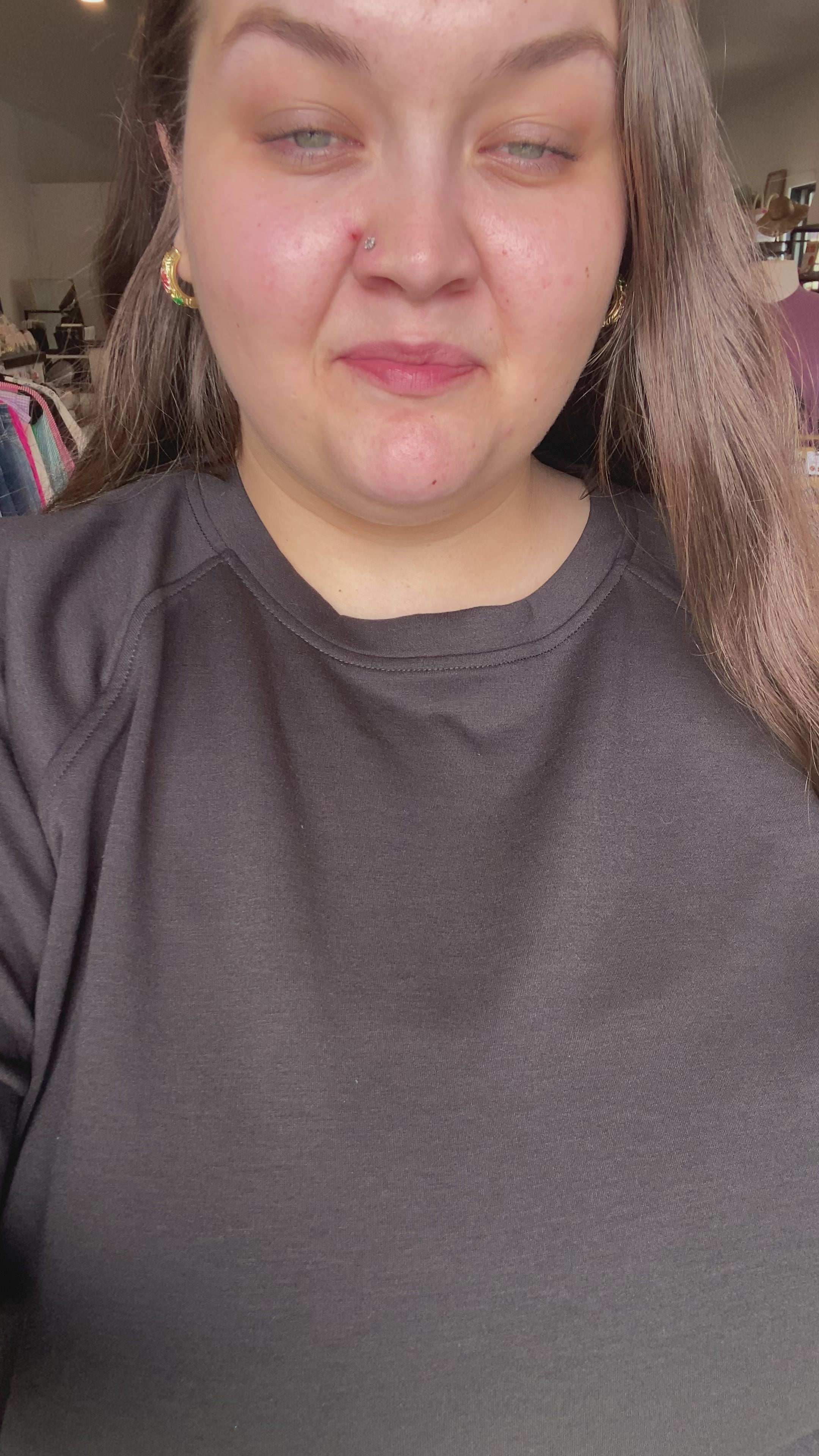 - Crewneck pullover with raglan sleeves, slightly cropped length