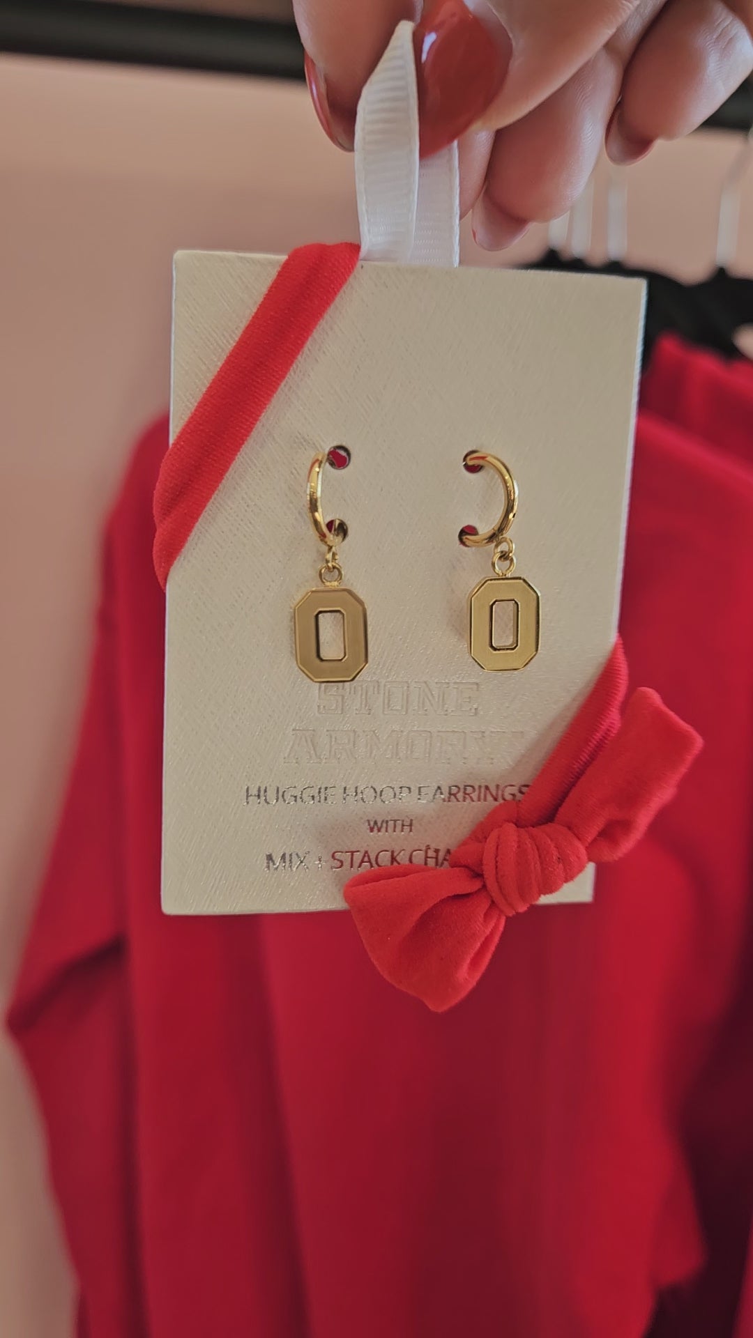 Celebrate the Buckeye spirit with these stunning gold huggie hoops featuring the iconic Block O. Whether you're cheering at the stadium or out on the town, these earrings deliver instant school pride with effortless style. Lightweight and comfortable for all-day wear, they're the perfect accessory for any Ohio State fan who wants to show their loyalty.