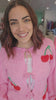 Elevate your aesthetic with this ultra-soft, fuzzy pink cardigan featuring charming red cherry accents and a trendy tie-front closure. This plush, lightweight knit is the ultimate blend of cozy comfort and playful, sweet style.
