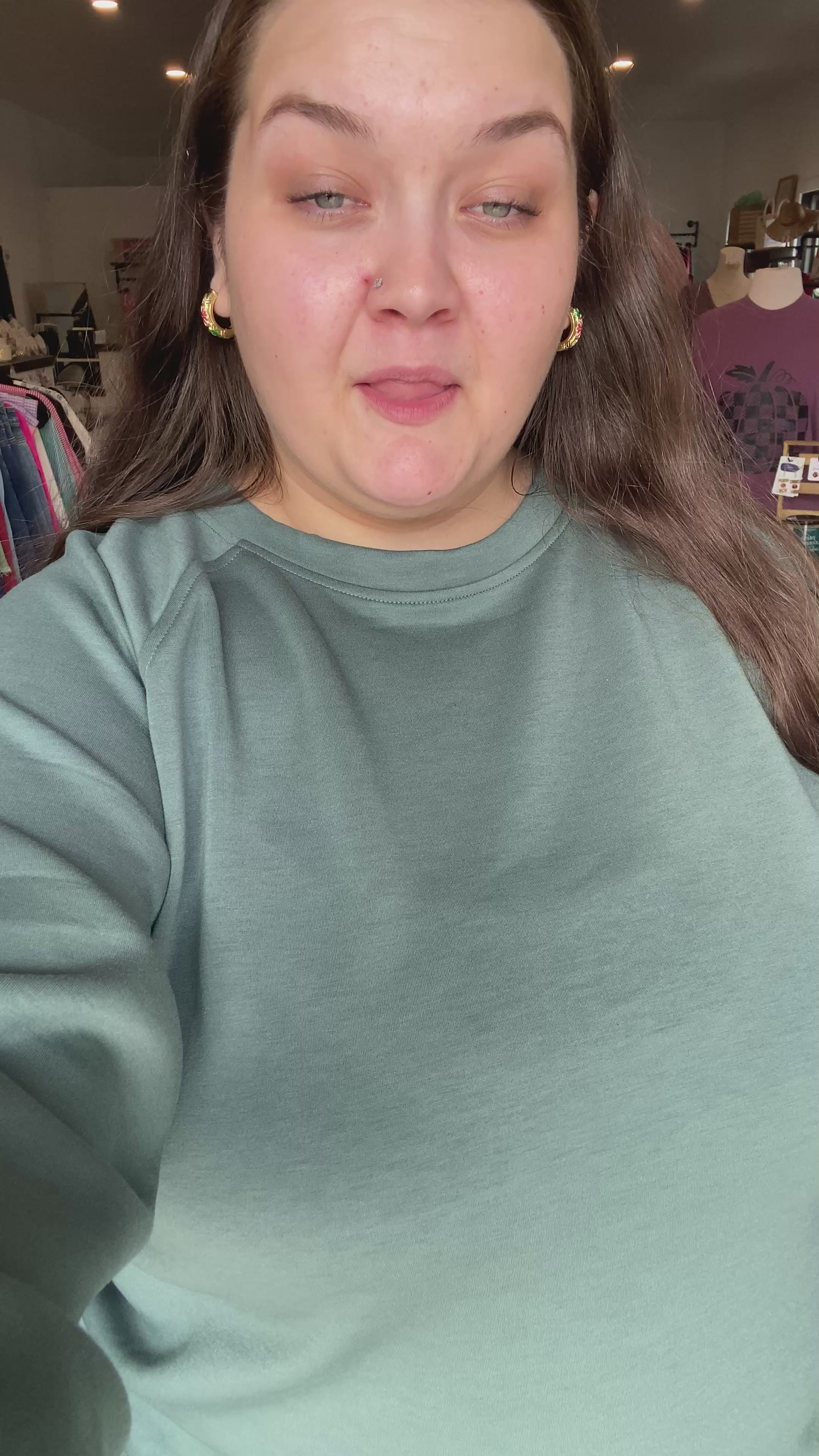 Makayla (long, brown hair) is wearing a XL.