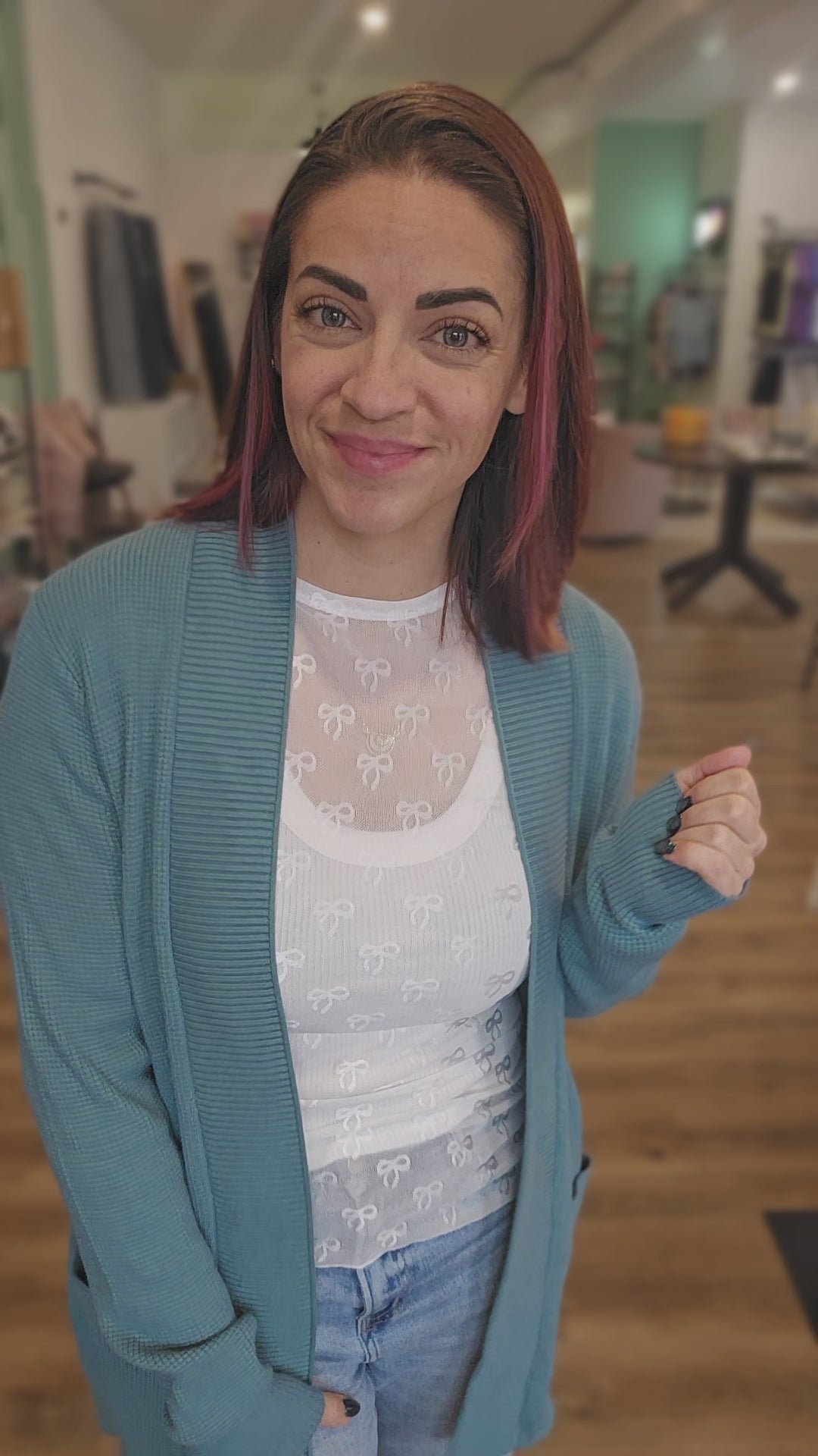 Mini Waffle Open Cardigan - Jade