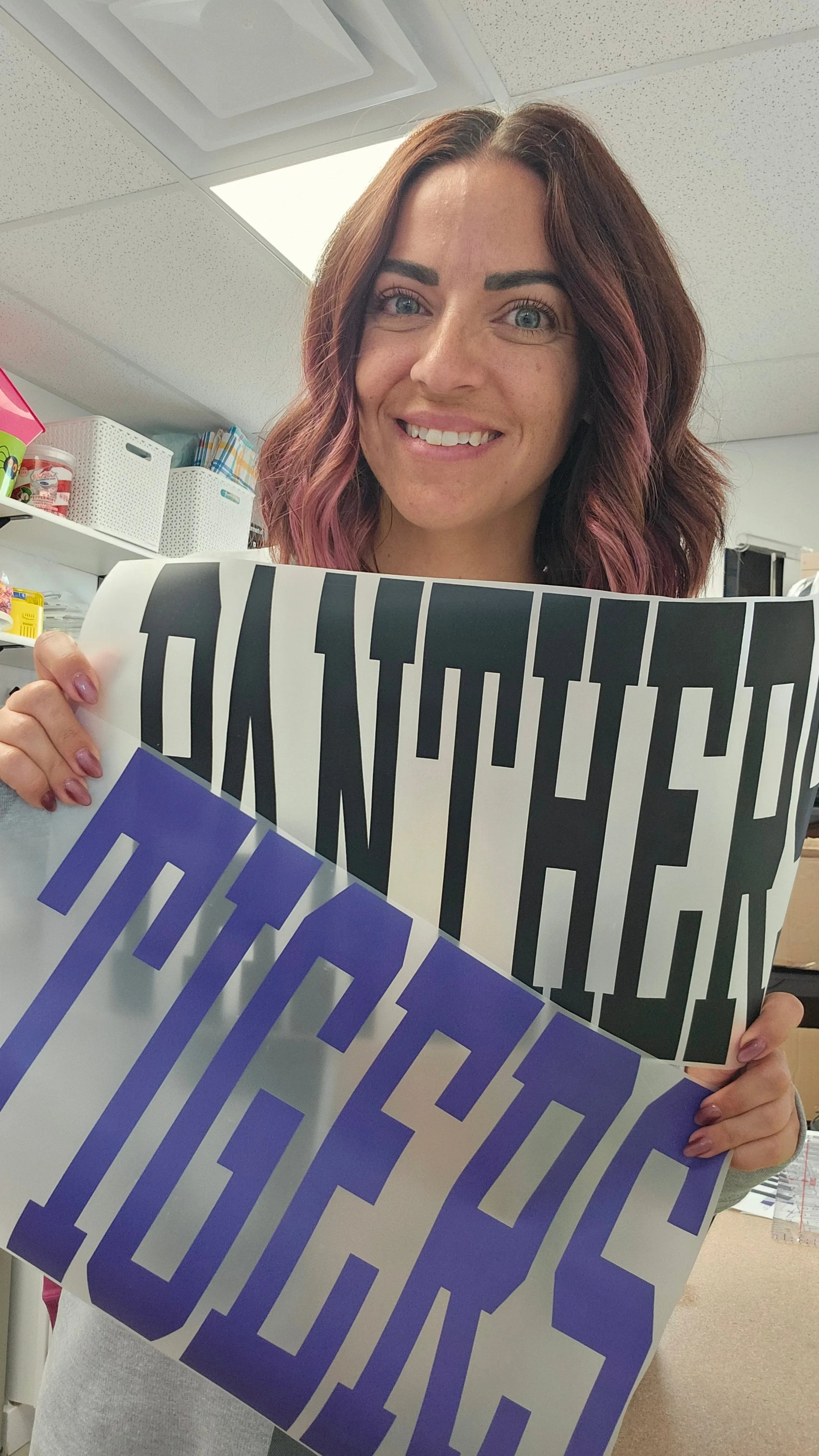 This cozy sweatshirt is custom-cut into a laid-back open cardigan, finished with a bold oversized graphic of your choice. Perfect for mascots, hype words, or anything meaningful (up to 7 characters). Just a heads up—if you choose an odd number of characters, the middle one will be split down the center.