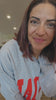 I'm wearing my usual sweatshirt size, Medium. I thought I might want to go up but it's perfect as is.