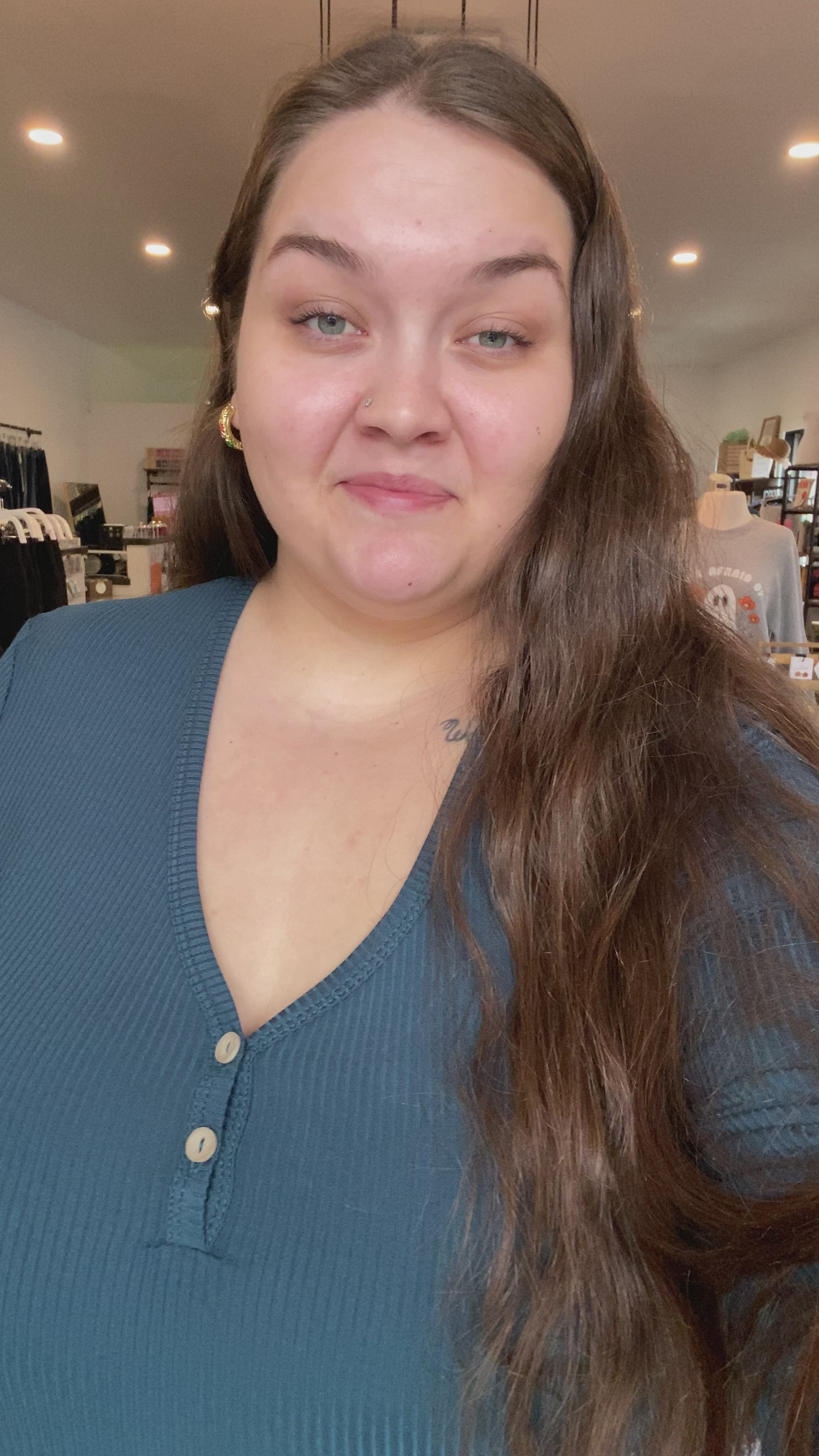 Luxe Ribbed Henley Button Top - Peacock Blue